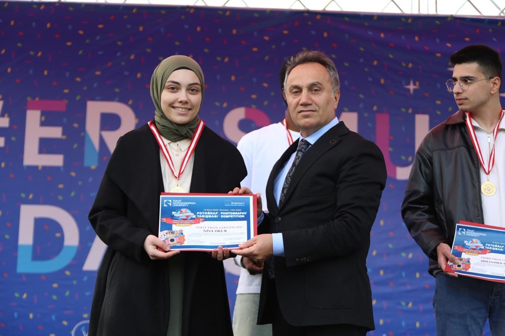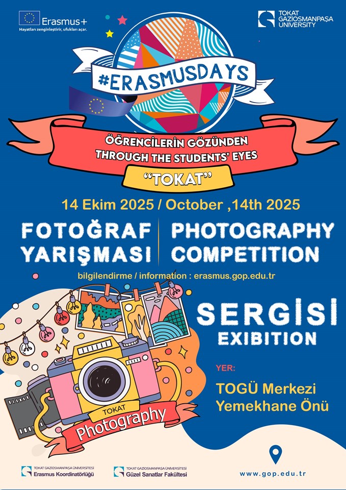 Üniversitemiz Erasmus Koordinatörlüğü ve Güzel Sanatlar Fakültesi tarafından ErasmusDays 2025 etkinlikleri kapsamında düzenlenen “Öğrencilerin Gözünden Tokat” adlı fotoğraf yarışması gerçekleştirildi. Yarışmaya toplam 40 eserle katılım sağlayan uluslararası öğrenciler ve TOGÜ öğrencileri genelinde seçilen eserlerden 3 fotoğraf ödüllendirildi. Güzel Sanatlar Fakültesi Grafik Tasarımı bölümü öğrencimiz Nisa OKUR birincilik derecesi ile ödül almıştır. Ayrıca fakültemizden katılım sağlayan öğrencilerimiz eserleri ile sergileme ödülü kazandılar. Sergi ErasmusDays 2025 kapsamında merkez yemekhane önü etkinlik alanında izleyici ile buluştu. Serginin gerçekleşmesinde görev alan öğretim elemanlarımız Prof. Dr. Adem YÜCEL, Doç. Dr. Mahir YERLİKAYA ve Arş. Gör. Dr. Kemal ÖZEN jüri üyesi olarak seçki yapmışlardır.