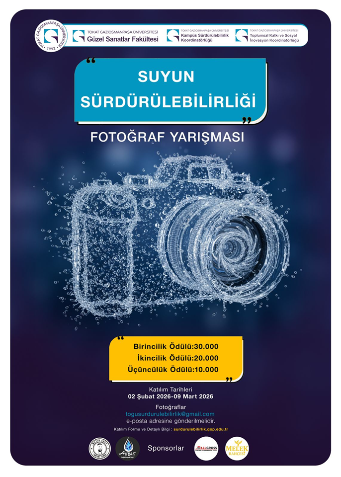 Su, yaşamın kaynağıdır. Ancak iklim krizi, kirlilik ve bilinçsiz tüketim nedeniyle dünya genelindeki su kaynakları her geçen gün daha büyük risk altındadır. Suyun sürdürülebilirliği; yalnızca bugünü değil, geleceği de koruma sorumluluğudur. Bu farkındalıktan hareketle Tokat Gaziosmanpaşa Üniversitesi tarafından “Su ve Suyun Sürdürülebilirliği” temalı bir fotoğraf yarışması düzenlenmektedir. Yarışma kapsamında, suyun yaşamımızdaki vazgeçilmez rolünü, su kaynaklarının korunmasının önemini ve sürdürülebilir su yönetimine dair güçlü görsel anlatıların fotoğraf sanatı aracılığıyla ortaya konması hedeflenmektedir.