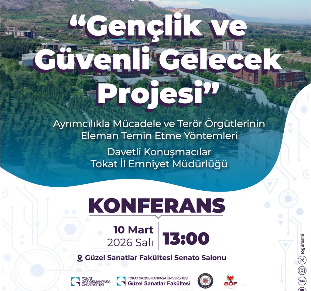 Tokat İl Emniyet Müdürlüğü görevlileri tarafından yürütülen “Gençlik ve Güvenli Gelecek Projesi” kapsamında, fakültemiz öğrencilerine yönelik bir konferans gerçekleştirilecektir.