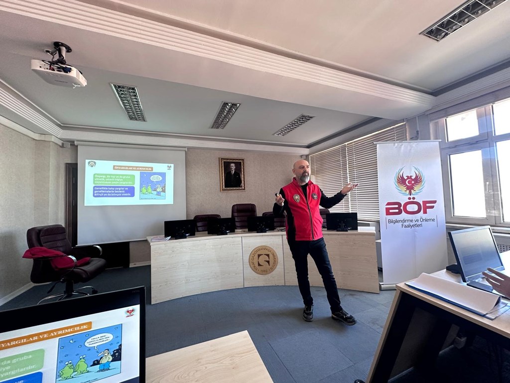 10 Mart 2026 tarihinde Fakültemizde, Tokat İl Emniyet Müdürlüğü’nde görevli Polis Memuru Oktay DURMUŞ ve Polis Memuru Şükrü KARAASLAN’ın katılımıyla “Gençlik ve Güvenli Gelecek / Ayrımcılıkla Mücadele ve Terör Örgütlerinin Eleman Temin Etme Yöntemleri” konulu bilgilendirme toplantısı gerçekleştirild